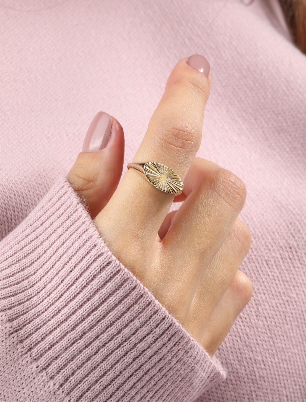Wear the sunshine and fall in love with this cool signet ring. Engraved with the sunbeam, it showcases a heartwarming appearance and looks stunning when worn on its own or in a cool ring stack.