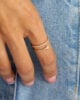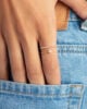 The Swirling Circle Diamond Ring is a refined yet bold statement piece that will complement any look. A stream of pavé diamonds is set on the lower band of the ring while a minimal circle is placed at the end of the upper band and embellished with sparkling diamonds.