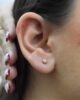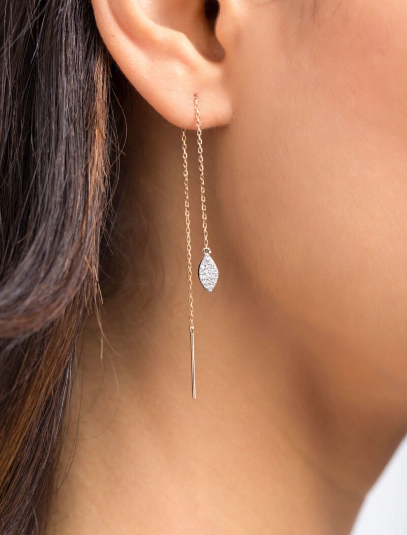 Elevate your elegance with these stunning 18K gold earrings. Three perfect dots form a sleek triangular shape, with a sparkling zircon gemstone adorning the top. A delicate chain drapes from the lower dots, adding a touch of movement and modern sophistication. A timeless design with a contemporary twist.