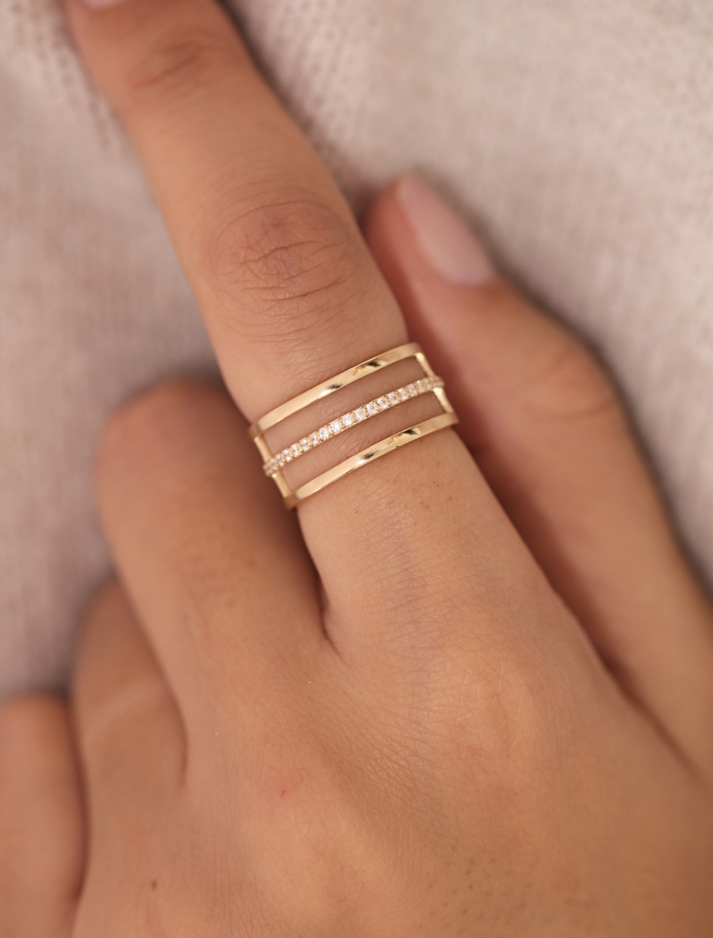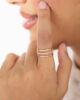Make a statement with the Triple Luxe Band Ring, crafted in solid 18K gold and designed to turn heads. This bold, thick ring features three layered bands — with sleek gold borders on the top and bottom, framing a center band encrusted with shimmering zircon gemstones.