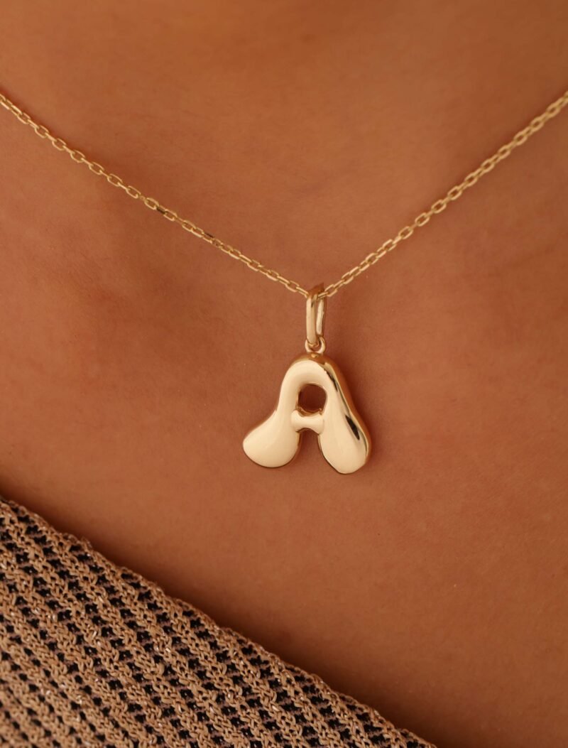 18K Gold Bubble Helium Balloon Initial Pendant/Necklace
