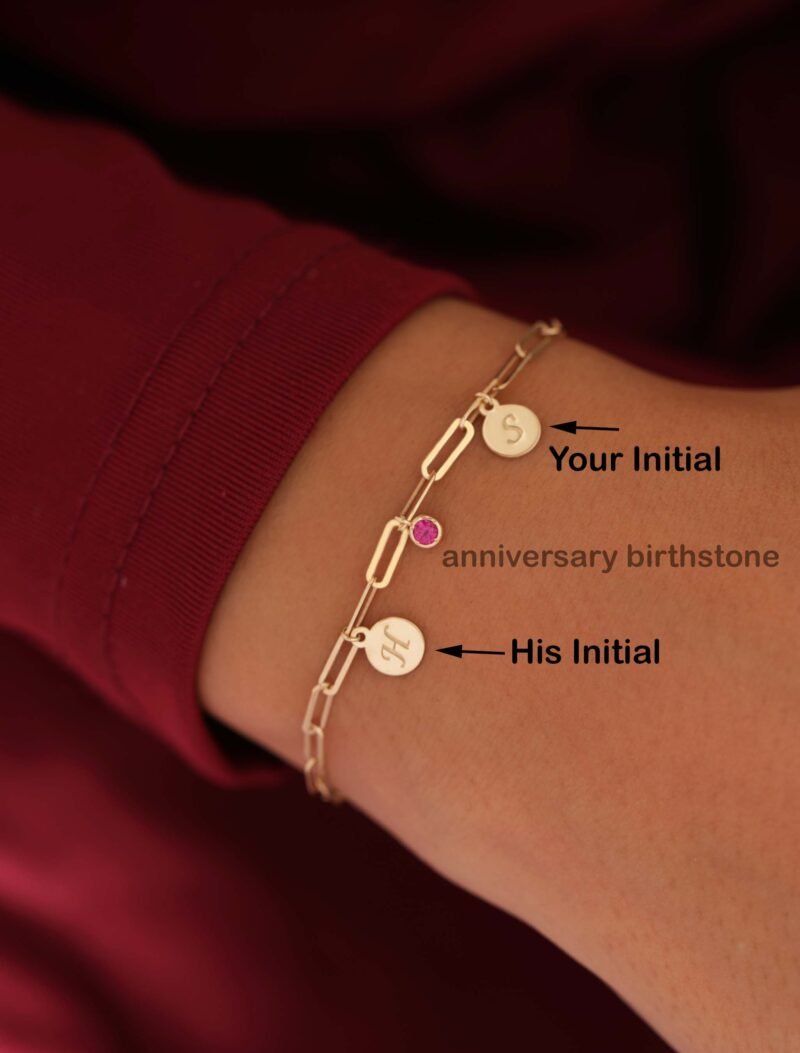18K Gold Dainty Paperclip Bracelet with Couple Initials & Anniversary Month